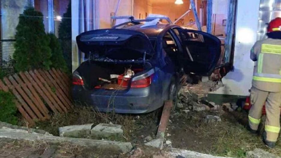 23-latek, który kierował BMW ściął drewniane ogrodzenie i uderzył w ścianę budynku mieszkalnego. Siła uderzenia była tak duża, że auto wbiło się częściowo do wnętrza domu.