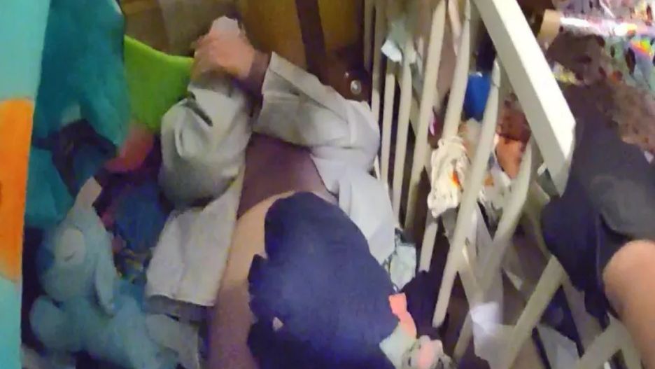 Policjanci opublikowali nagranie z zatrzymania 22-latki. Jak można zauważyć, w pomieszczeniu panował ogromny bałagan. Widać m.in. ubrania, pudła, pluszowe i plastikowe zabawki. Mimo to funkcjonariusze wypatrzyli poszukiwaną kobietę.