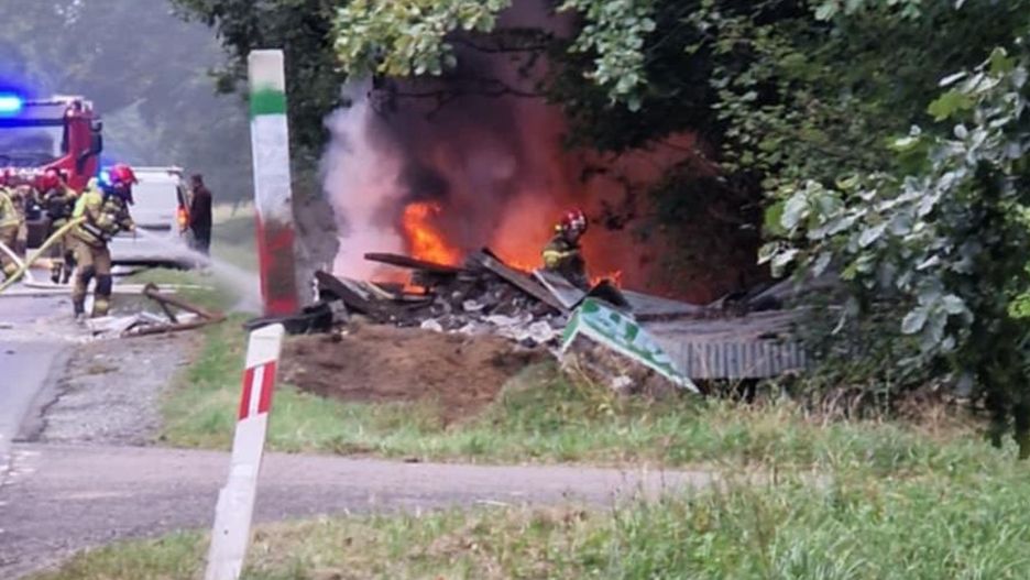 Koszmarny wypadek na drodze krajowej nr 25 pod Oleśnicą. Samochód osobowy uderzył w przystanek autobusowy i stanął w płomieniach. Kierowca zginął na miejscu. Droga została całkowicie zablokowana.