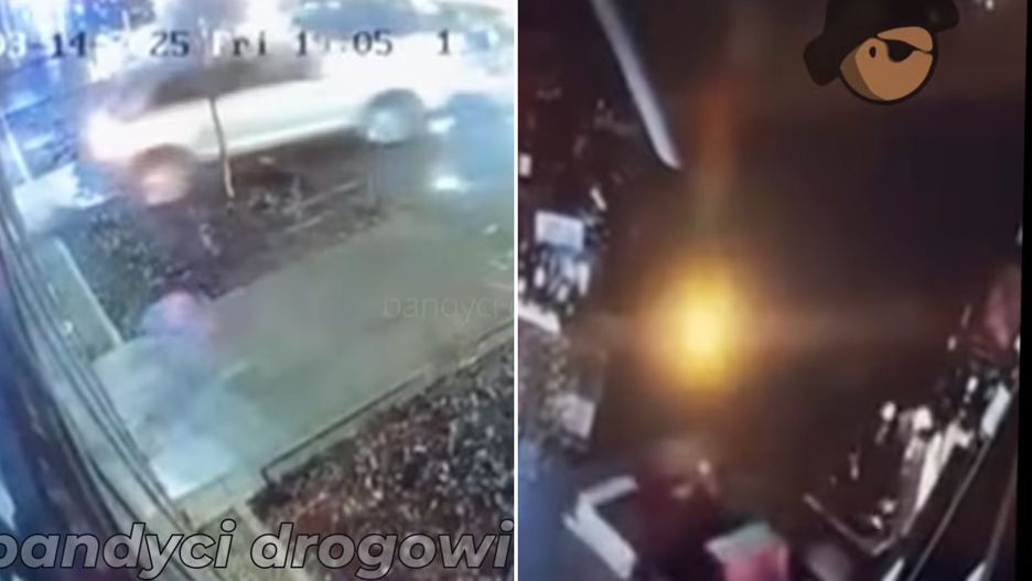 Do sieci tymczasem trafiło nagranie ukazujące moment zdarzenia. Pokazano, co zarejestrowały dwie kamery - zarówno ta na zewnątrz, jak i wewnątrz sklepu. Film udostępniono facebookowym profilu "Bandyci drogowi".