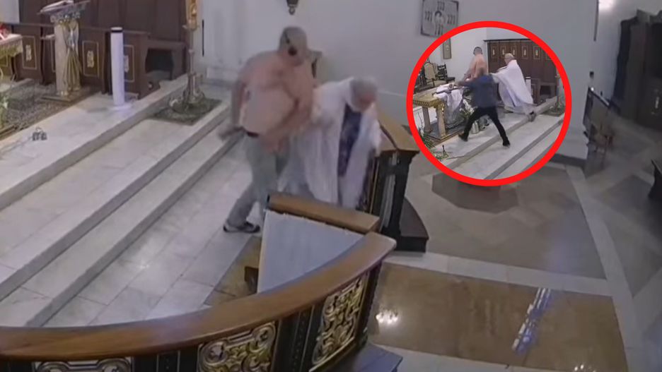 Na nagraniach dostępnych w sieci można zobaczyć, że 47-latek szarpał duchownego. Na szczęście kapłan wyszedł z tego zdarzenia bez szwanku.